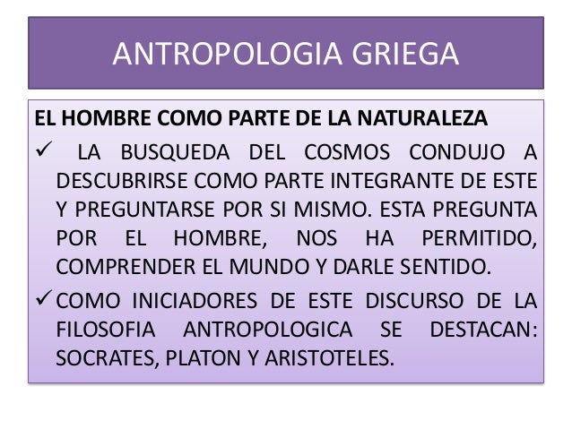 La antropología es uno de los tratados mas antiguos de la filosofía y designa cualquier doctrina que nos hable del sobre el hombre, sobre su naturaleza y sobre su situación sobre el universo. Estudia al hombre desde su ser biológico, su ser cultural y su ser personal.